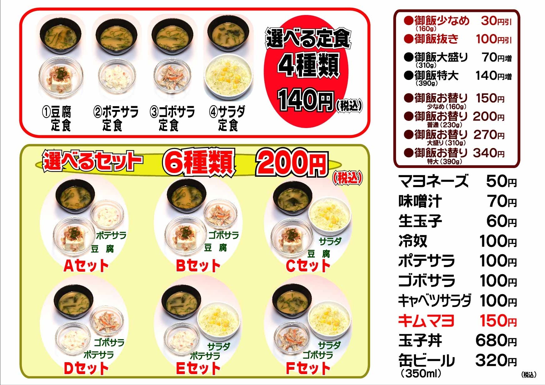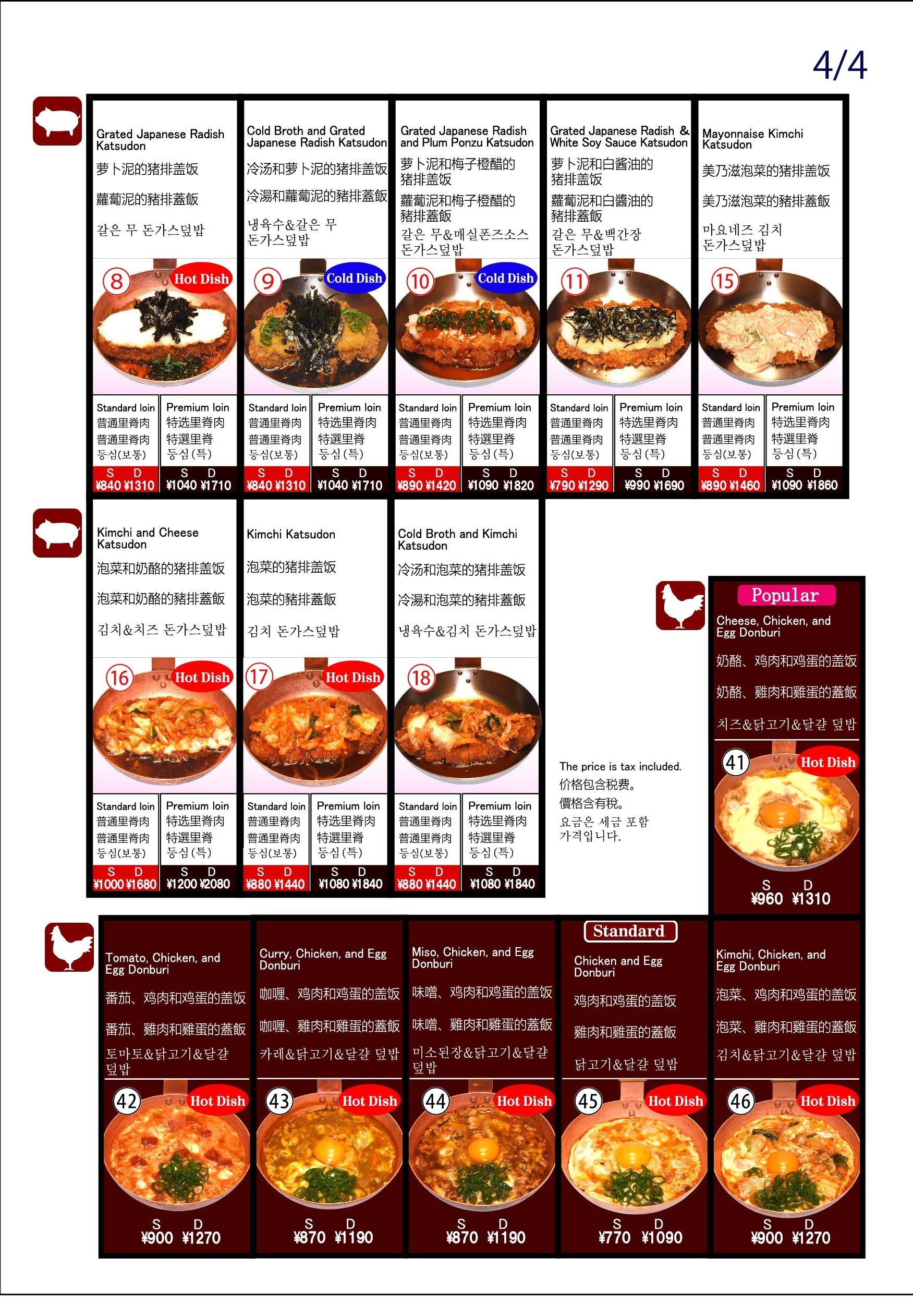 ○キムチかつ丼○ひやキムチかつ丼○キムチチーズかつ丼○味噌かつ丼○味噌チーズかつ丼○味噌親子丼○キムチ親子丼